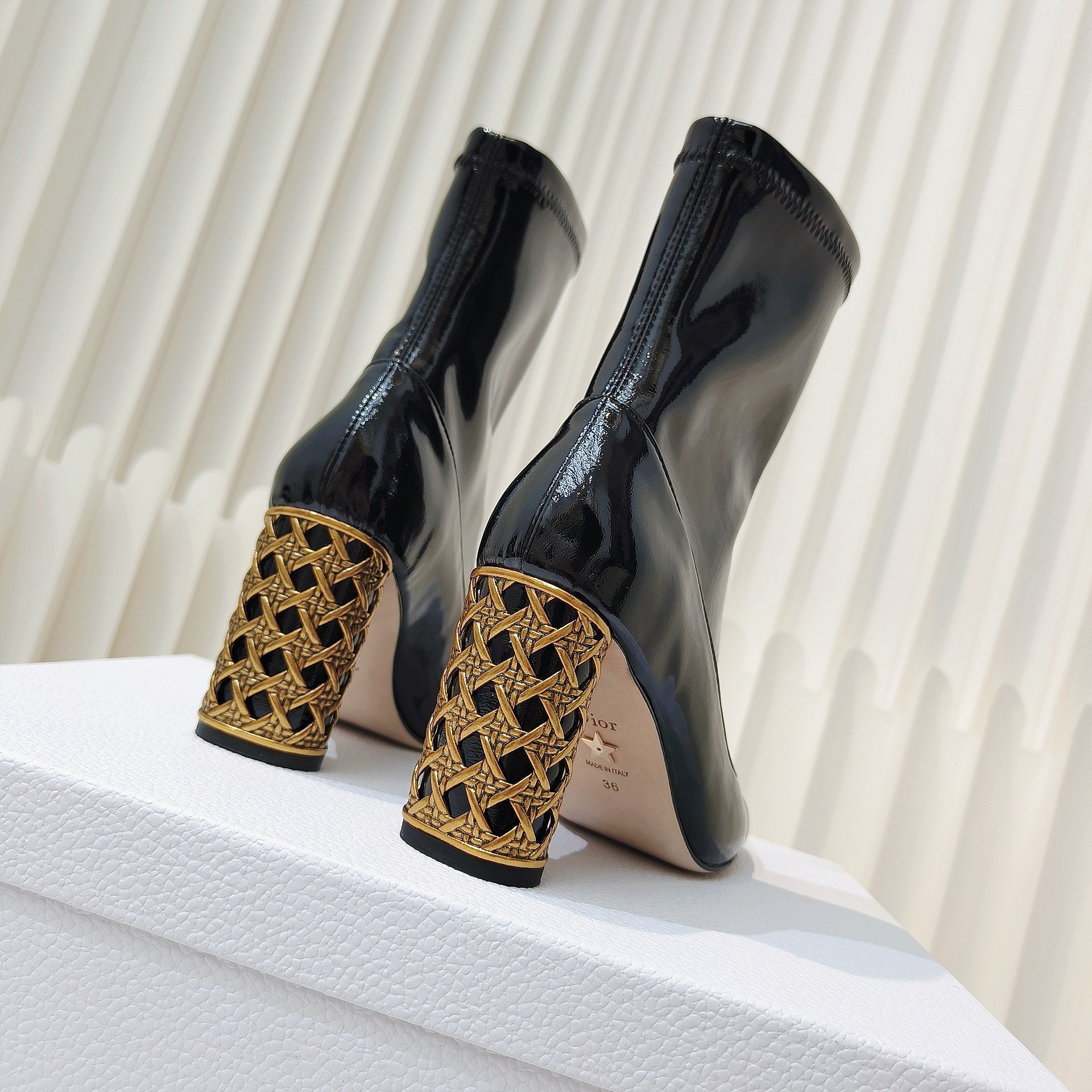 CD Icon Heeled Ankle Boot 80mm In Glossy Black Cowhide 111384