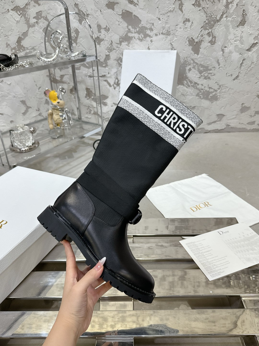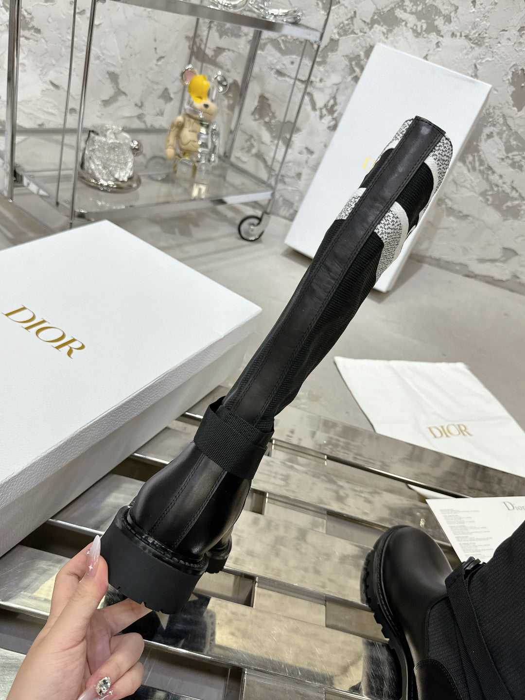 D-Major Boot In Black Mix White Denim Fabric 100566