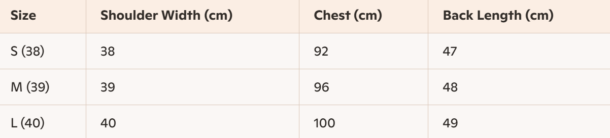- Size : 36, 38, 40