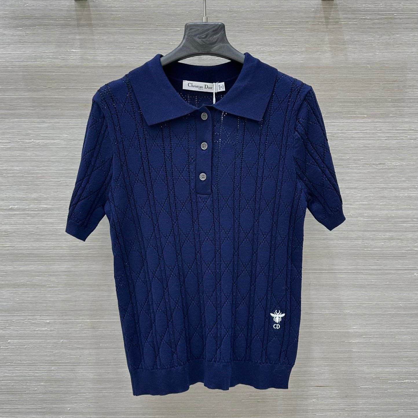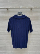 CD 25 Hollow Polo Knitted Short-sleeved Top Blue Silk Wool