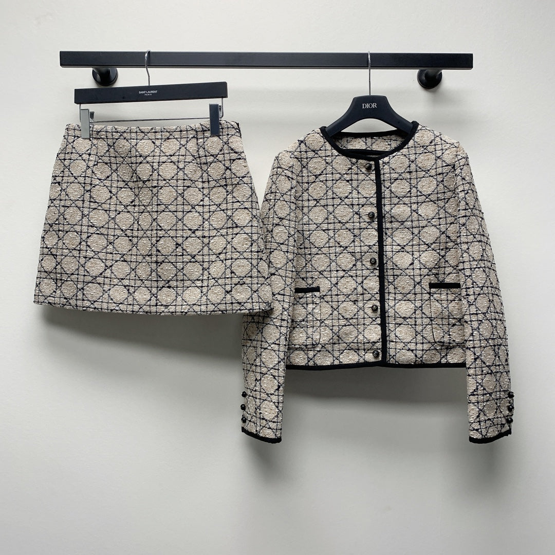 CD 25 Plaid Jacket Set Beige Mix Black 261589