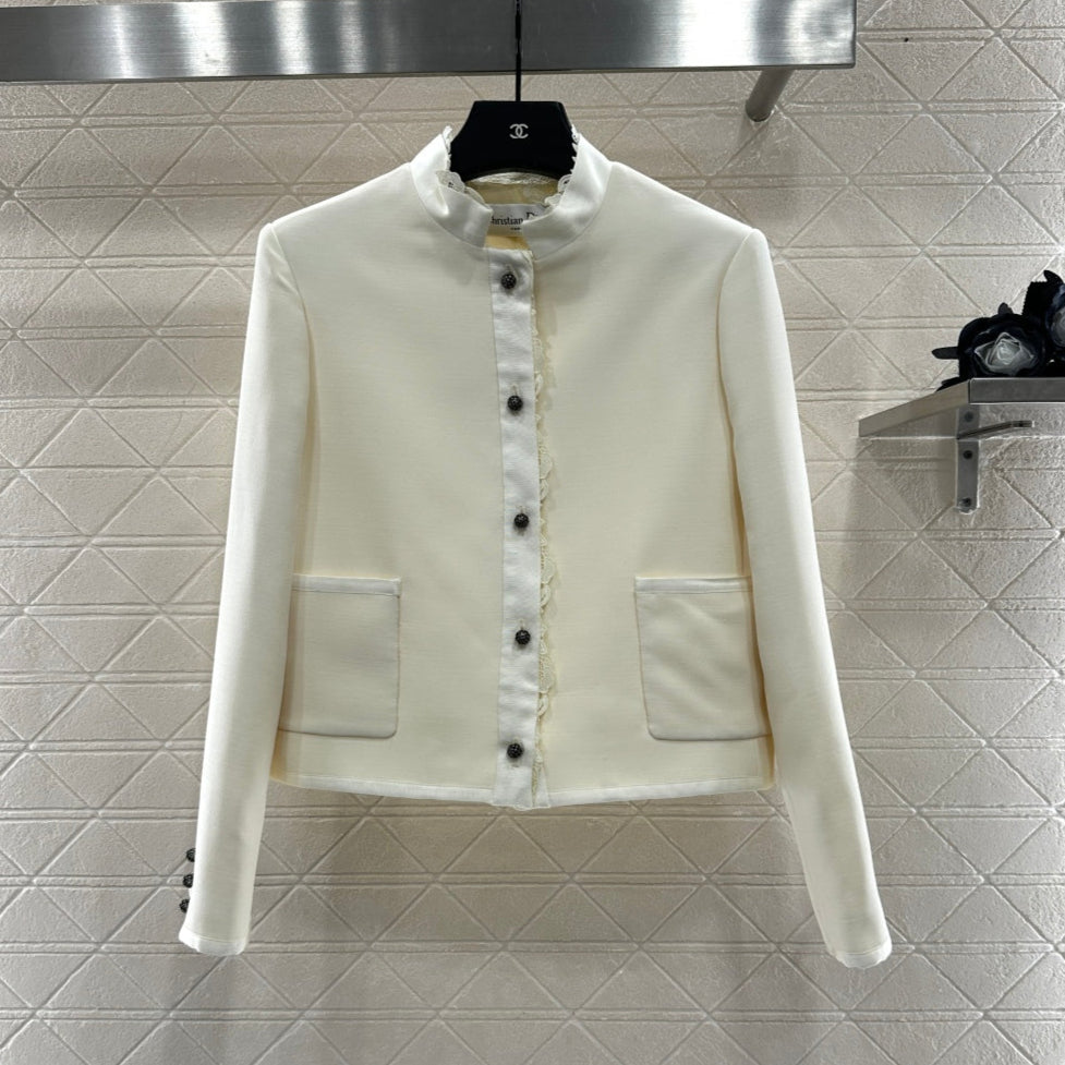 CD 25 Cardigan Stand Collar Light Beige Wool