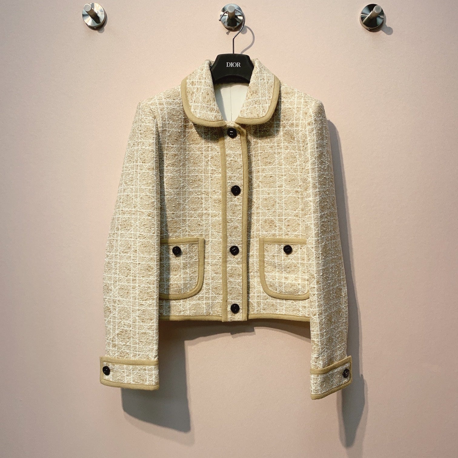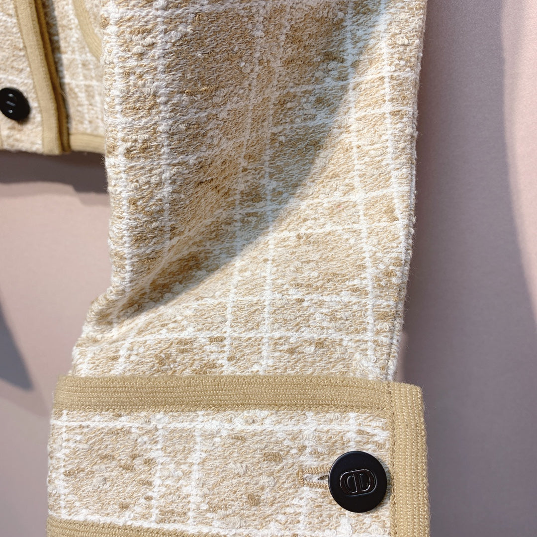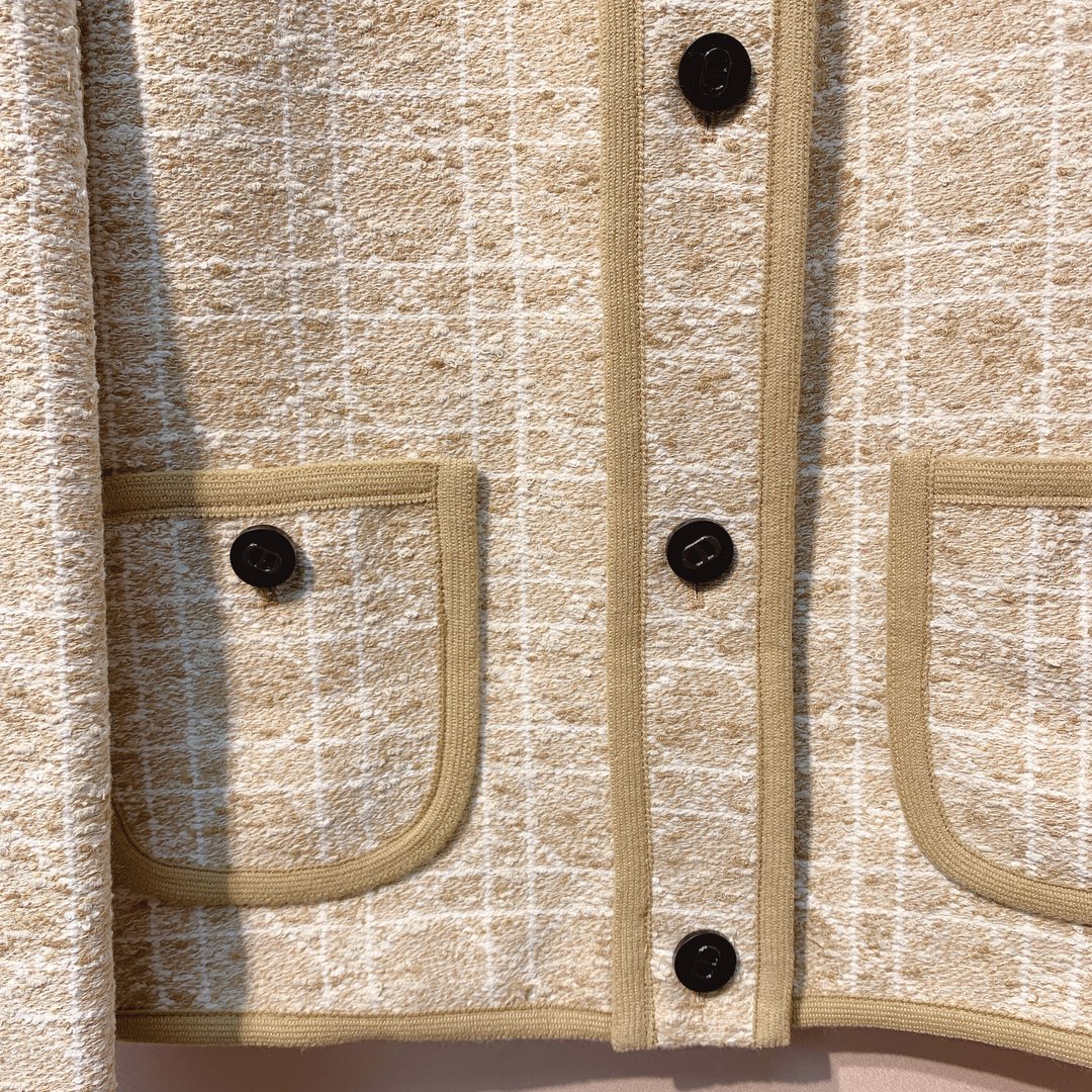 CD 25 Plaid Quilted Lapel Set Beige Cotton