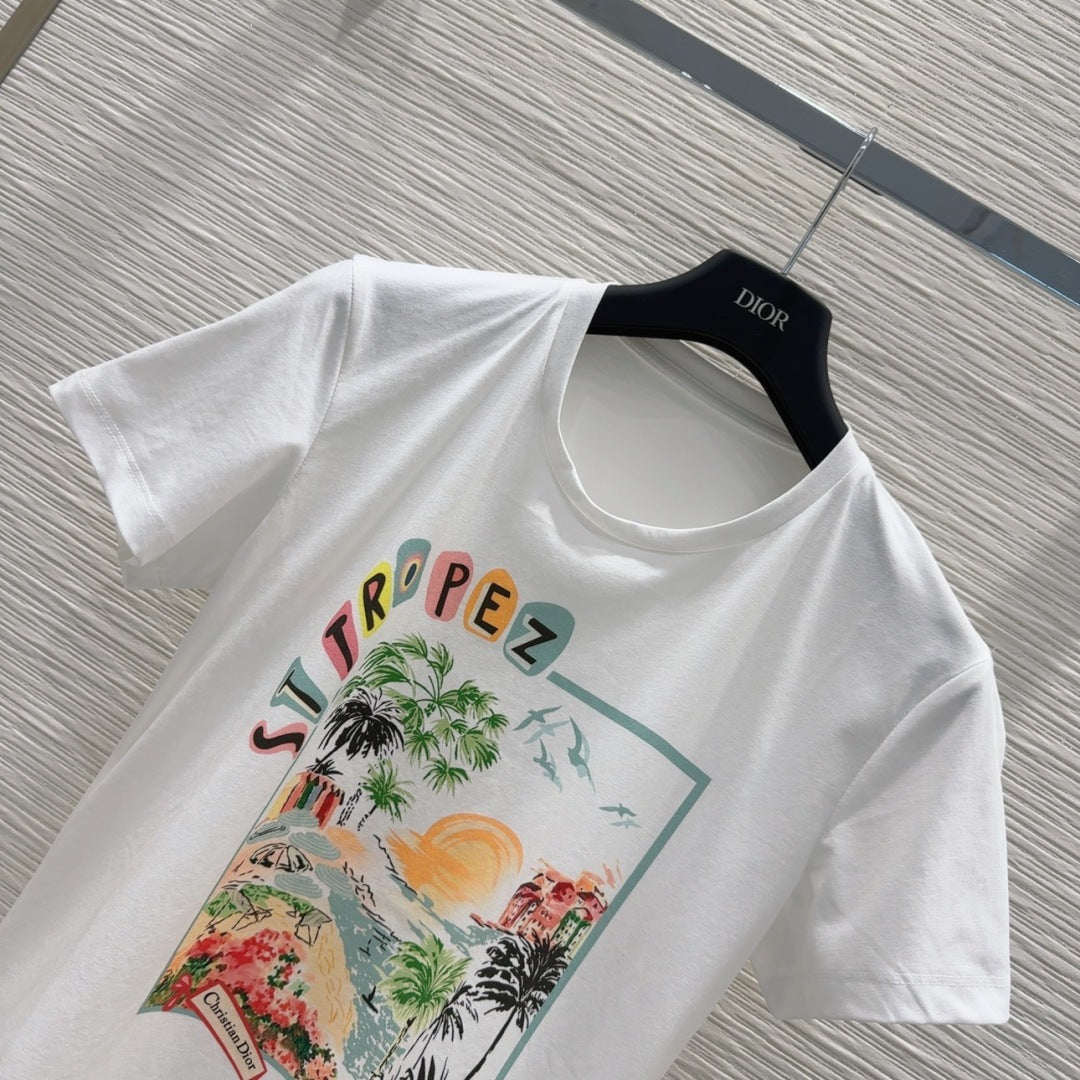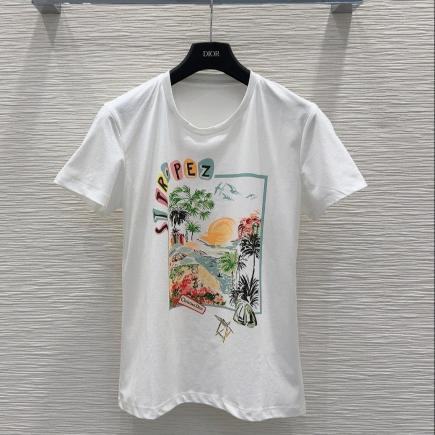 CD 2025 Shirt Dress Beige with Colorful Cotton