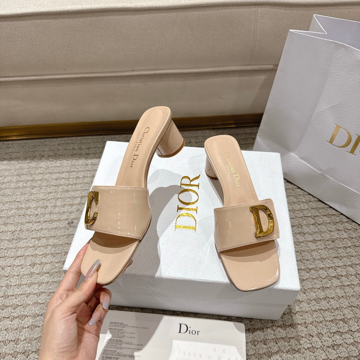 CD 25 C'EST DIO light beige patent leather 396128