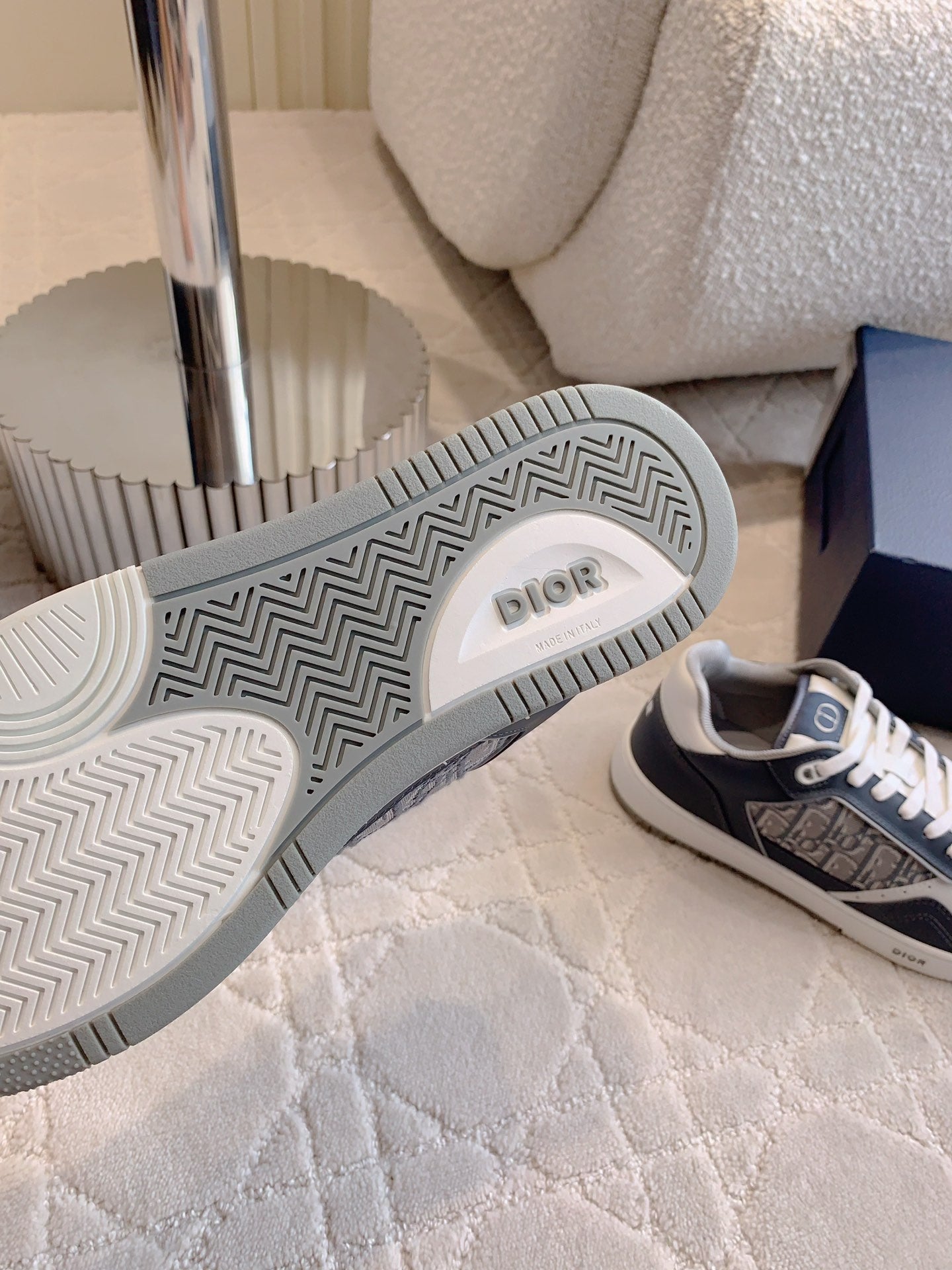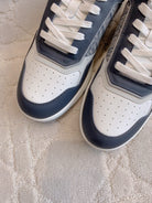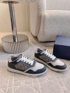 CD B27 Low-Top Sneaker White Charcoal Blue Print Calfskin And Oblique Jacquard Fabric