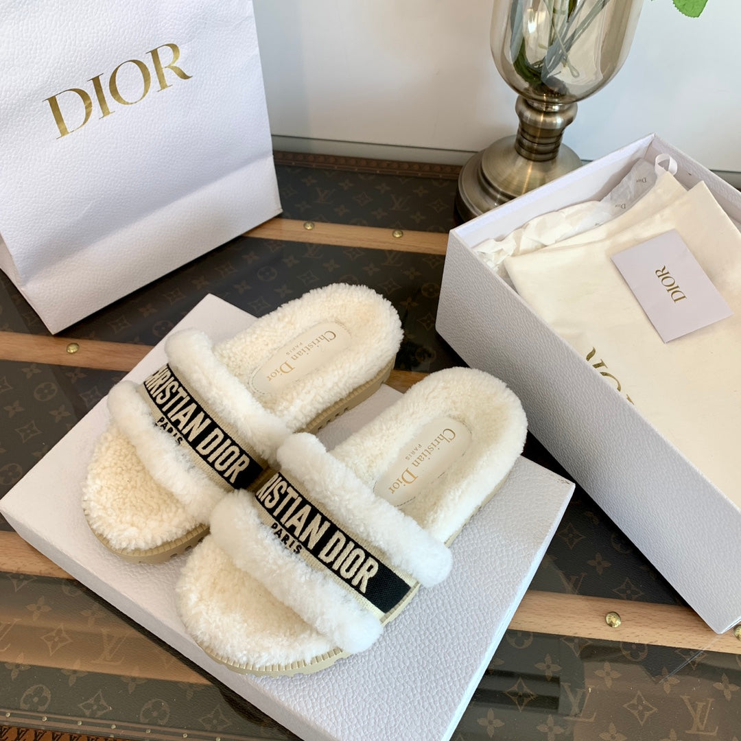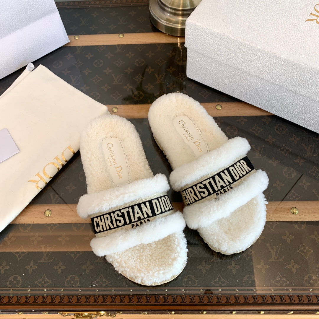 CD Dway Slide Black White Fleece Lining And Canvas Fabric