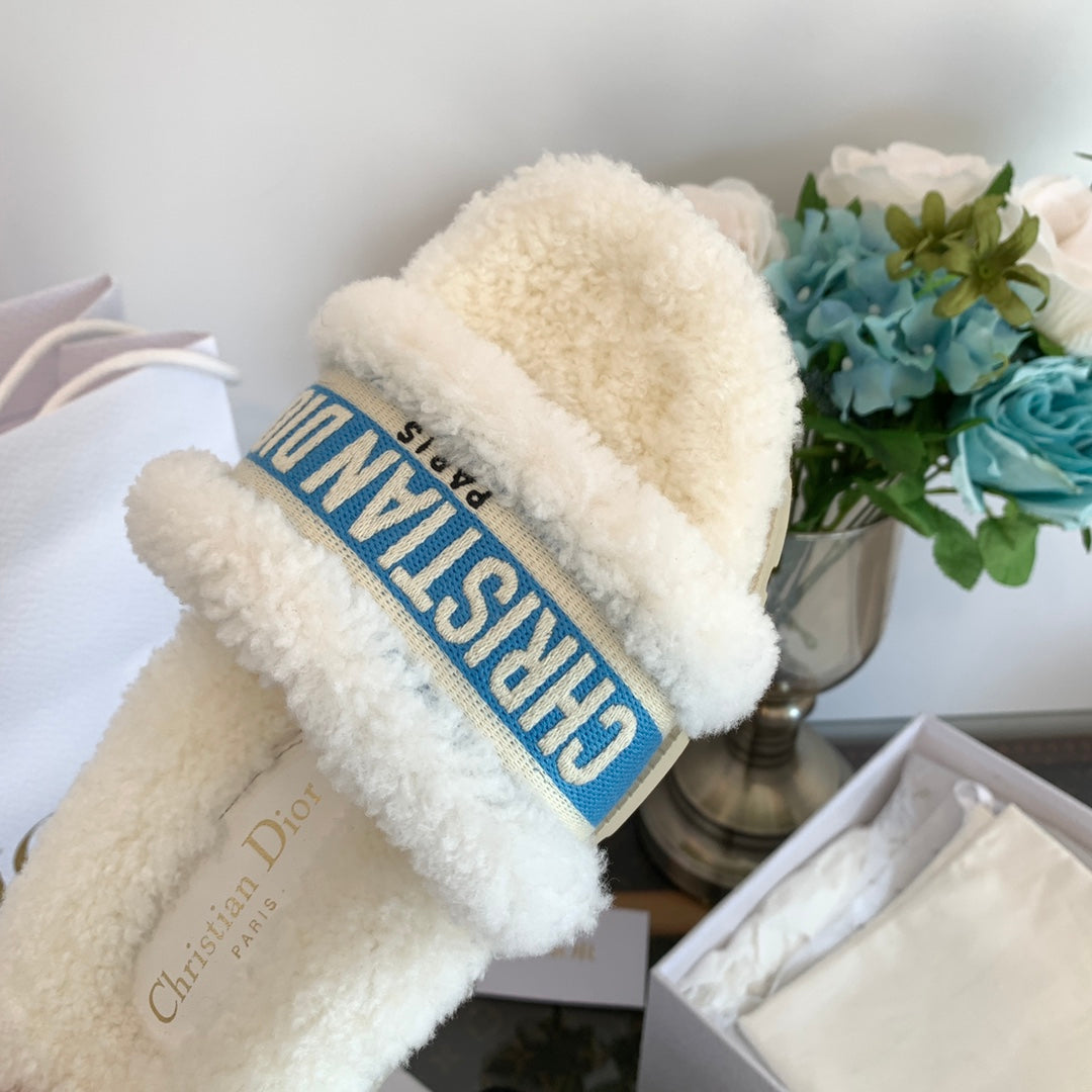 CD Dway Slide Blue White Wool Fleece Lining And Canvas Fabric