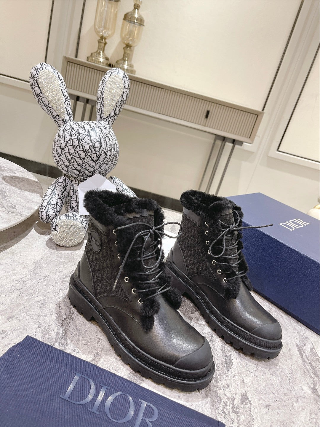 CD Explorer Ankle Boot 50mm Black Fleece Lining Oblique Jacquard Fabric And Cowhide