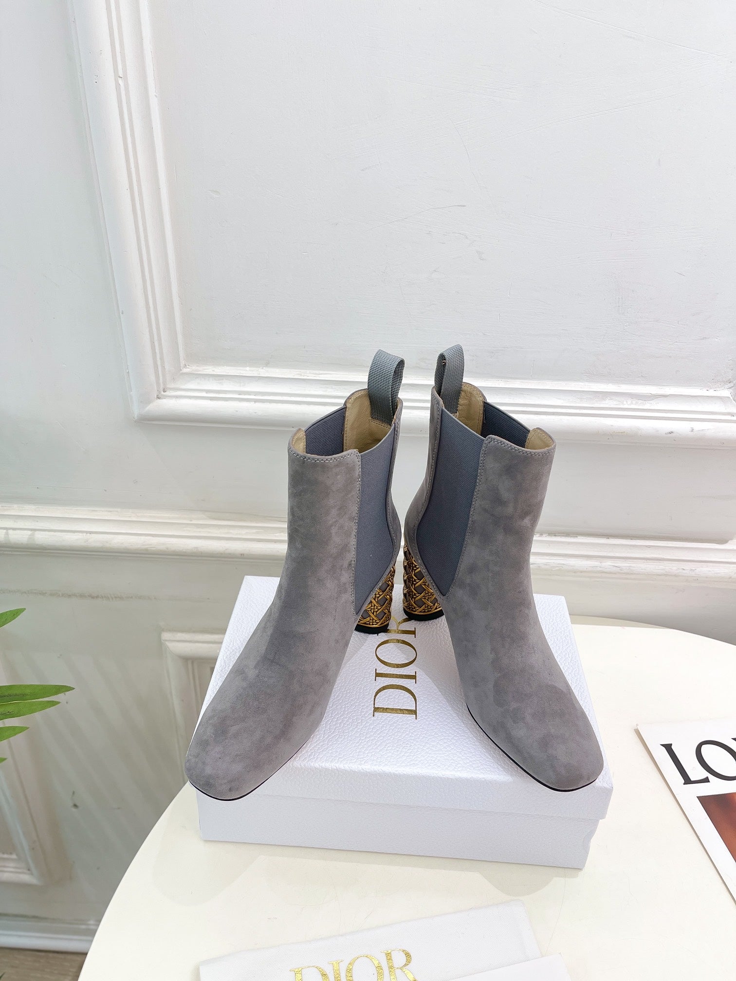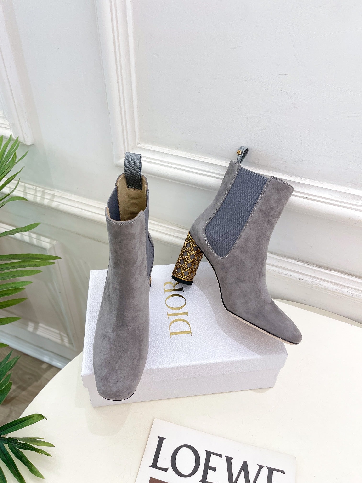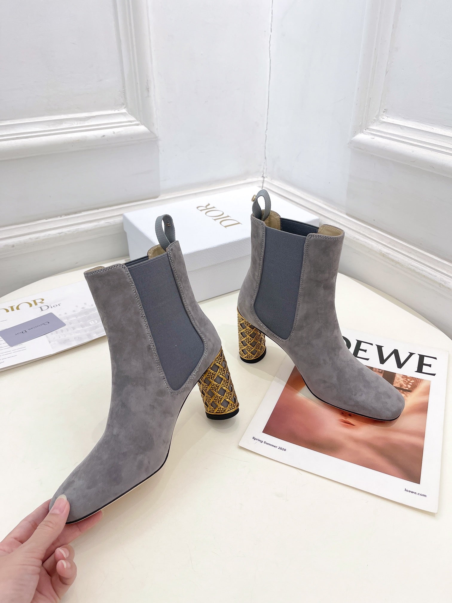 CD Icon Heeled Ankle Boot 80mm Grey Suede