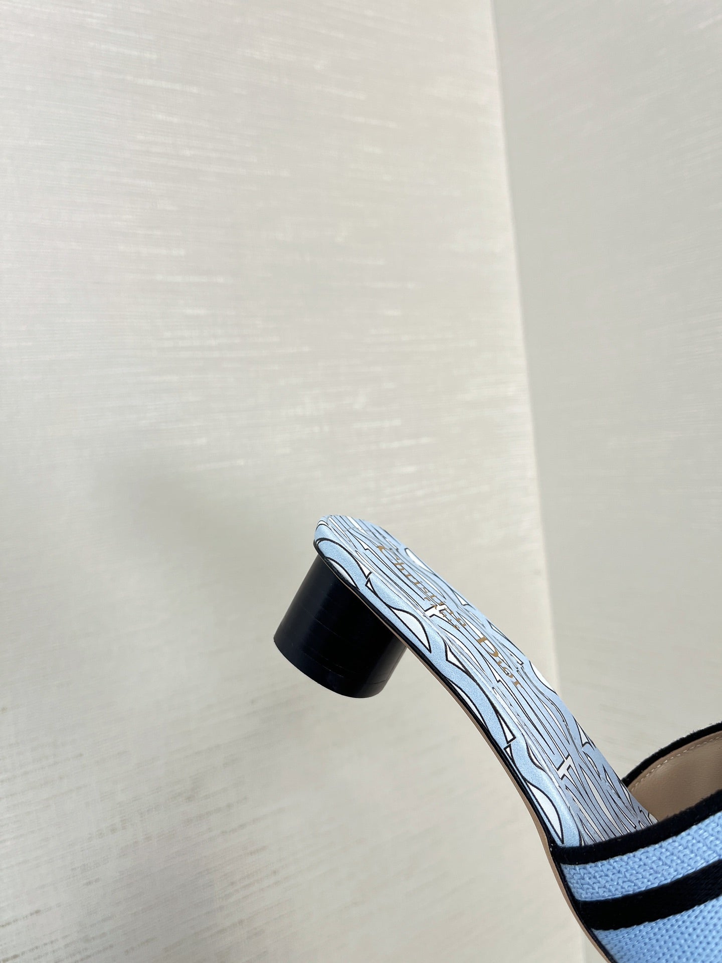 dway heeled slide 35 embroidered cotton cloud blue miss cd alllover motif