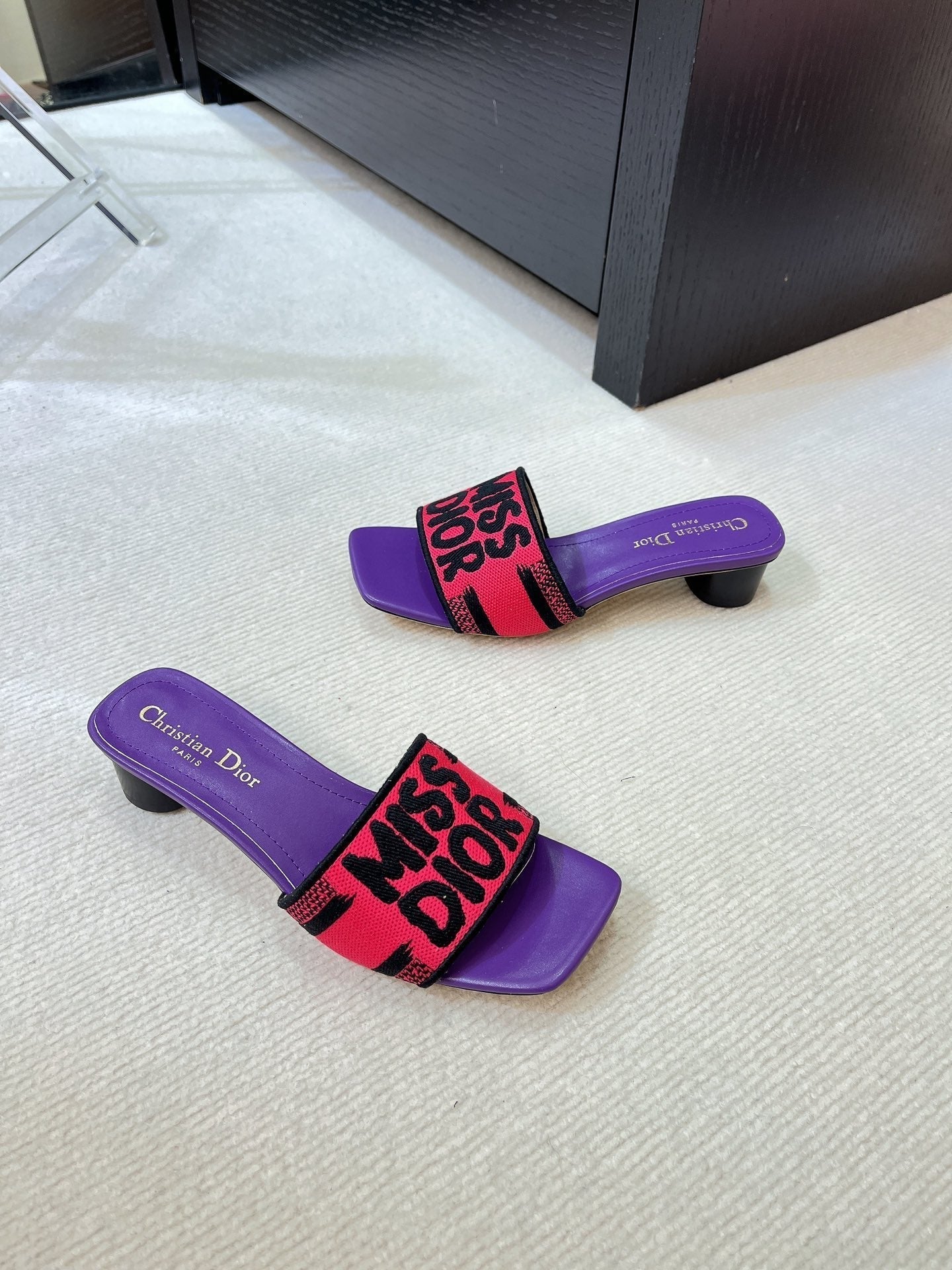 dway heeled slide 35 red purple embroidered cotton