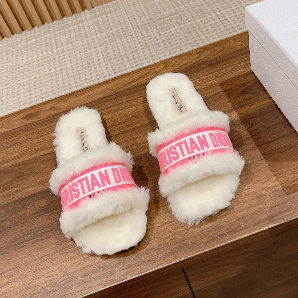 CD Dway Slide White Pink Fleece Lining And Canvas Fabric
