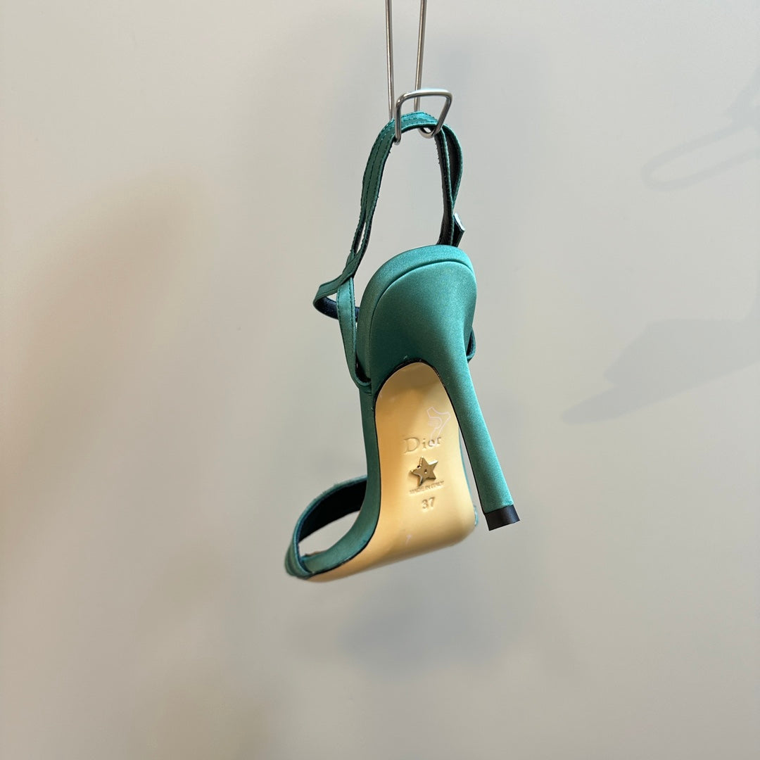 CD Dway Heeled Sandal 105mm Green Silk And Lambskin