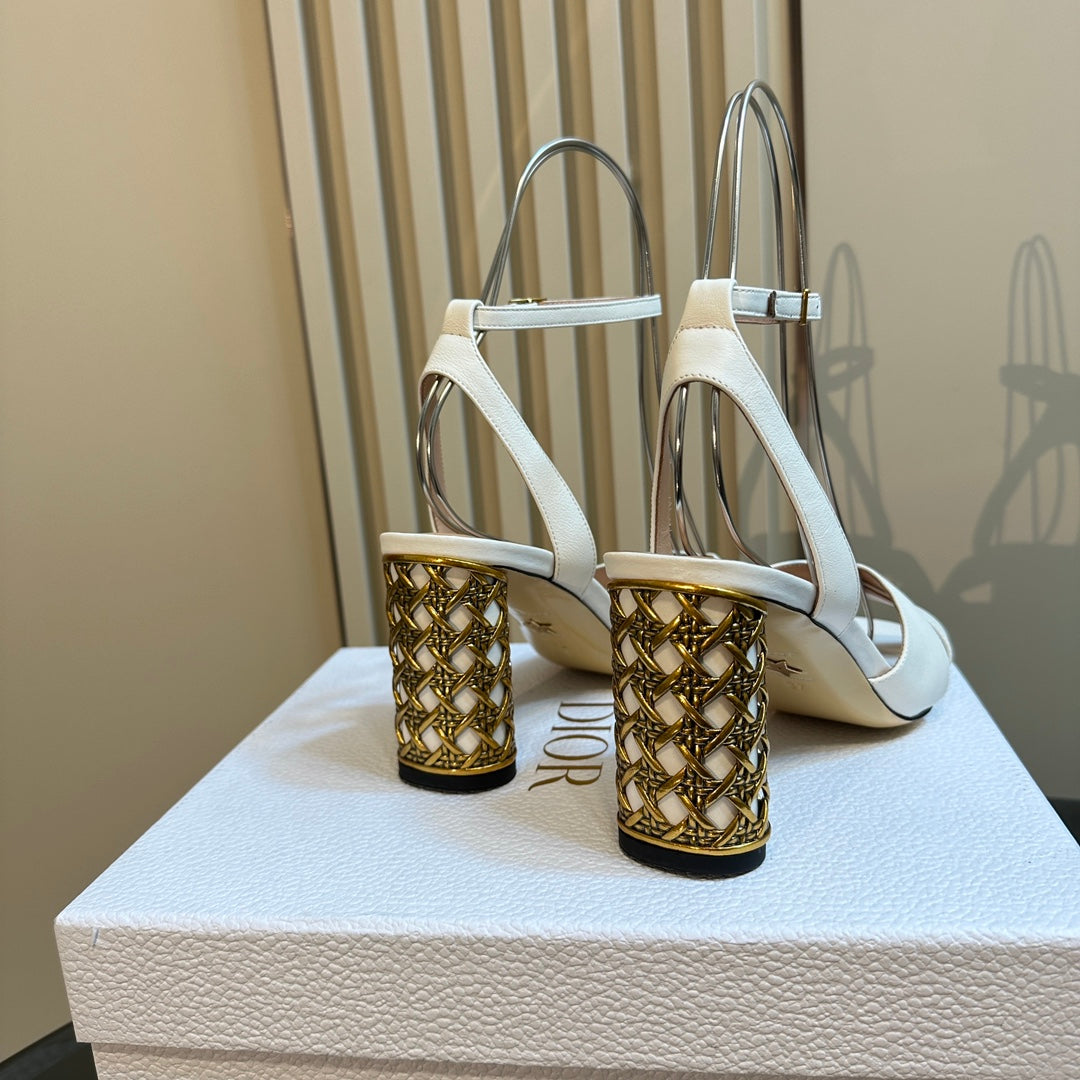 CD Icon Heeled Sandal 95mm White Calfskin