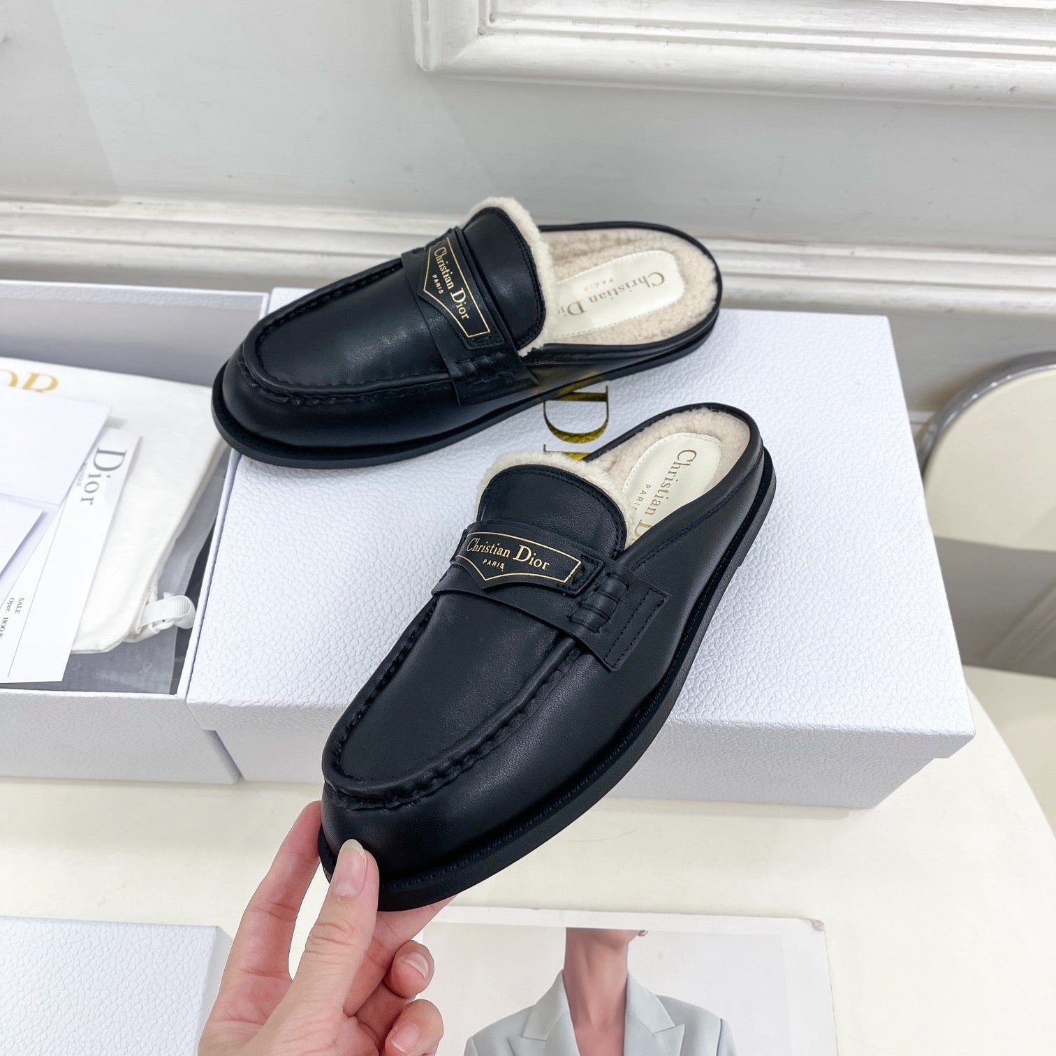 Dioract Slide In Black Suede And Wool Fleece Lining 109875
