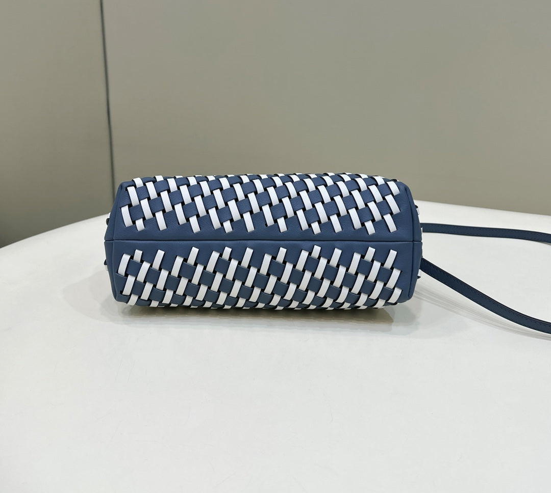 FENDI 26 FIRST SMALL IN MIDNIGHT BLUE MIX WHITE CALFSKIN SILVER HARDWARE