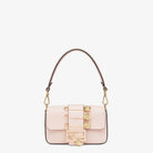 FENDI FENDACE BROOCH MINI 20 BAGUETTE BAG IN LIGHT PINK CALFSKIN