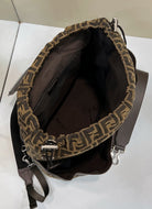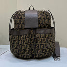 FENDI STRIKE LARGE 46 FF MOCHA BROWN JACQUARD FABRIC BACKPACK