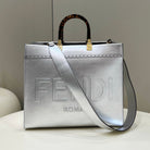 SHINE LARGE 35 TOTE IN SILVER CALFSKIN