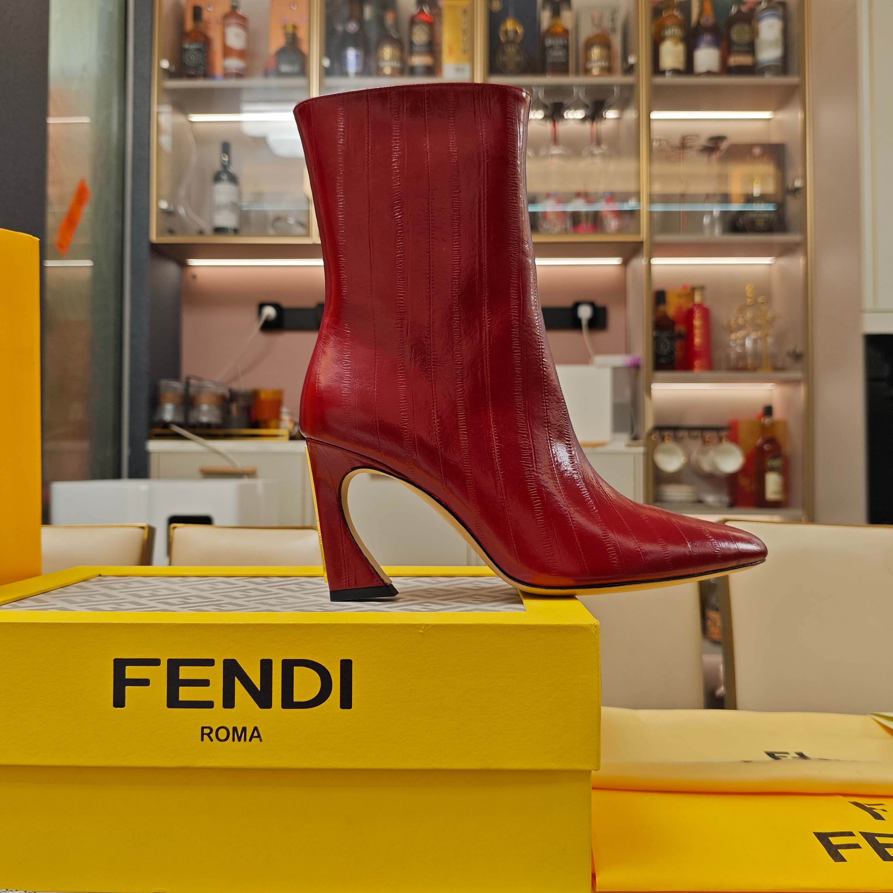 Fendi 25ss high-heeled boots red sheepskin 502717