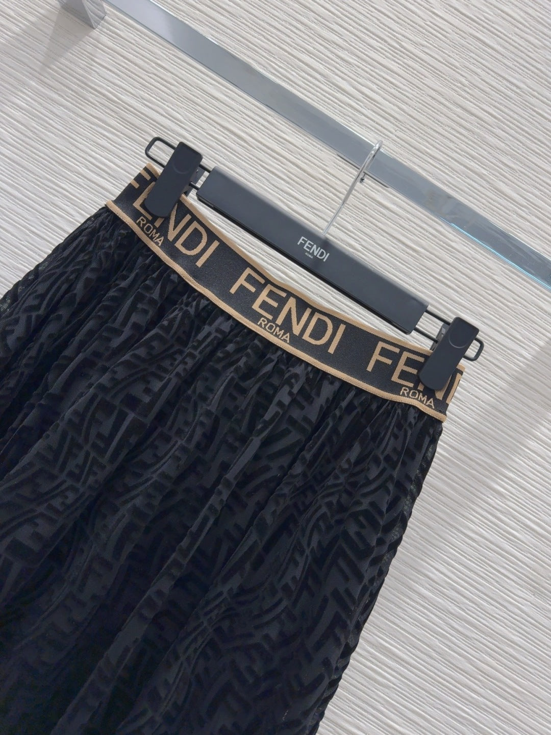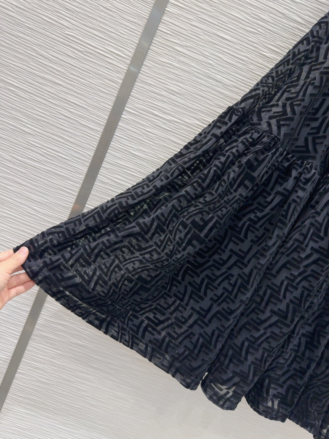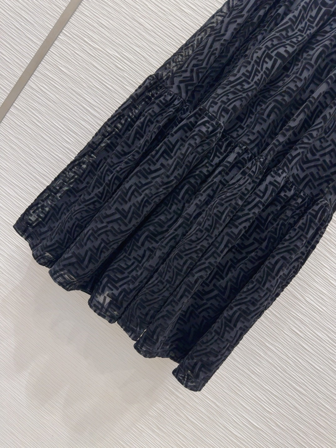 Fendi 2025 Long Pleated Lace Dress Black Polyester