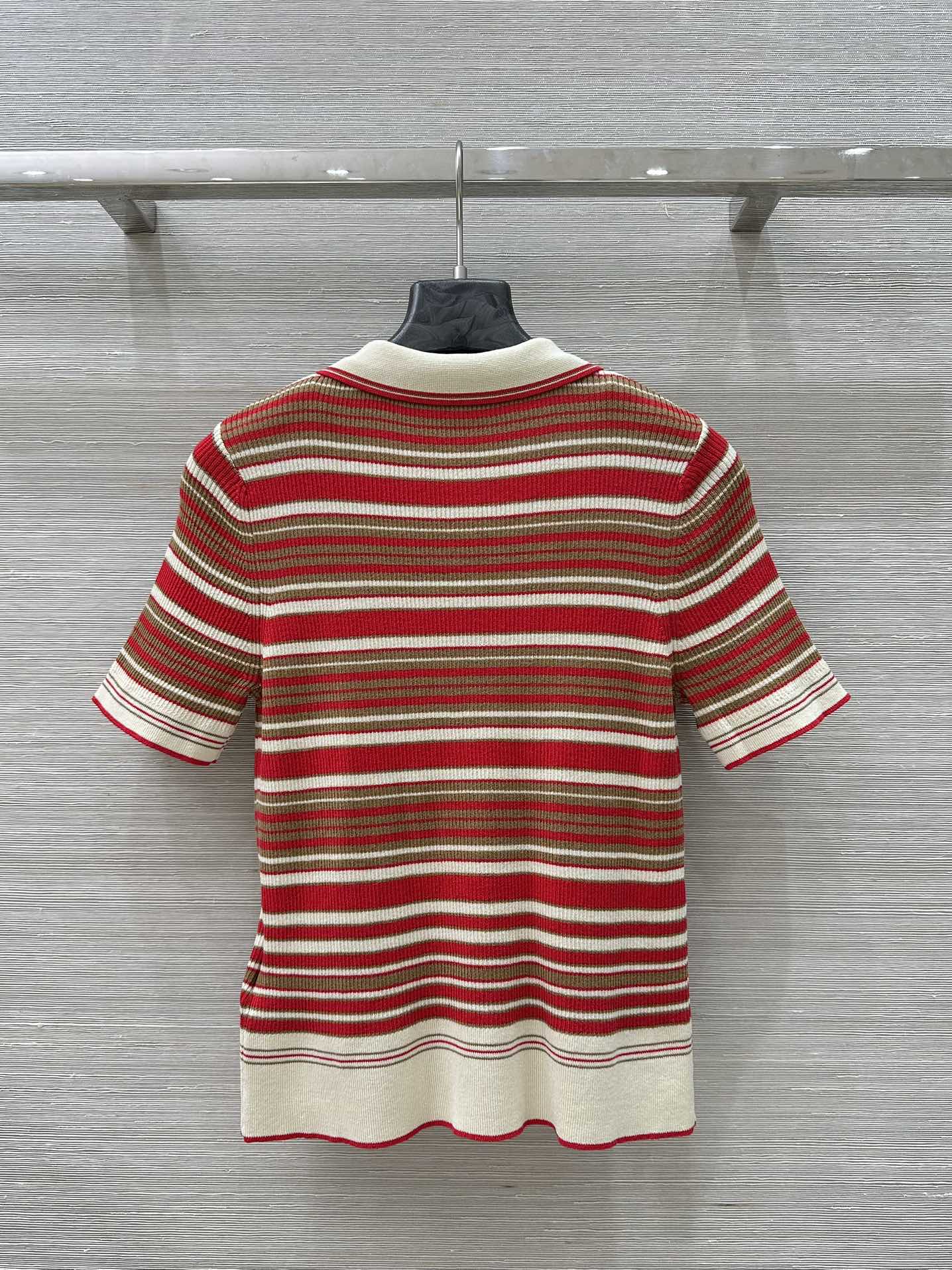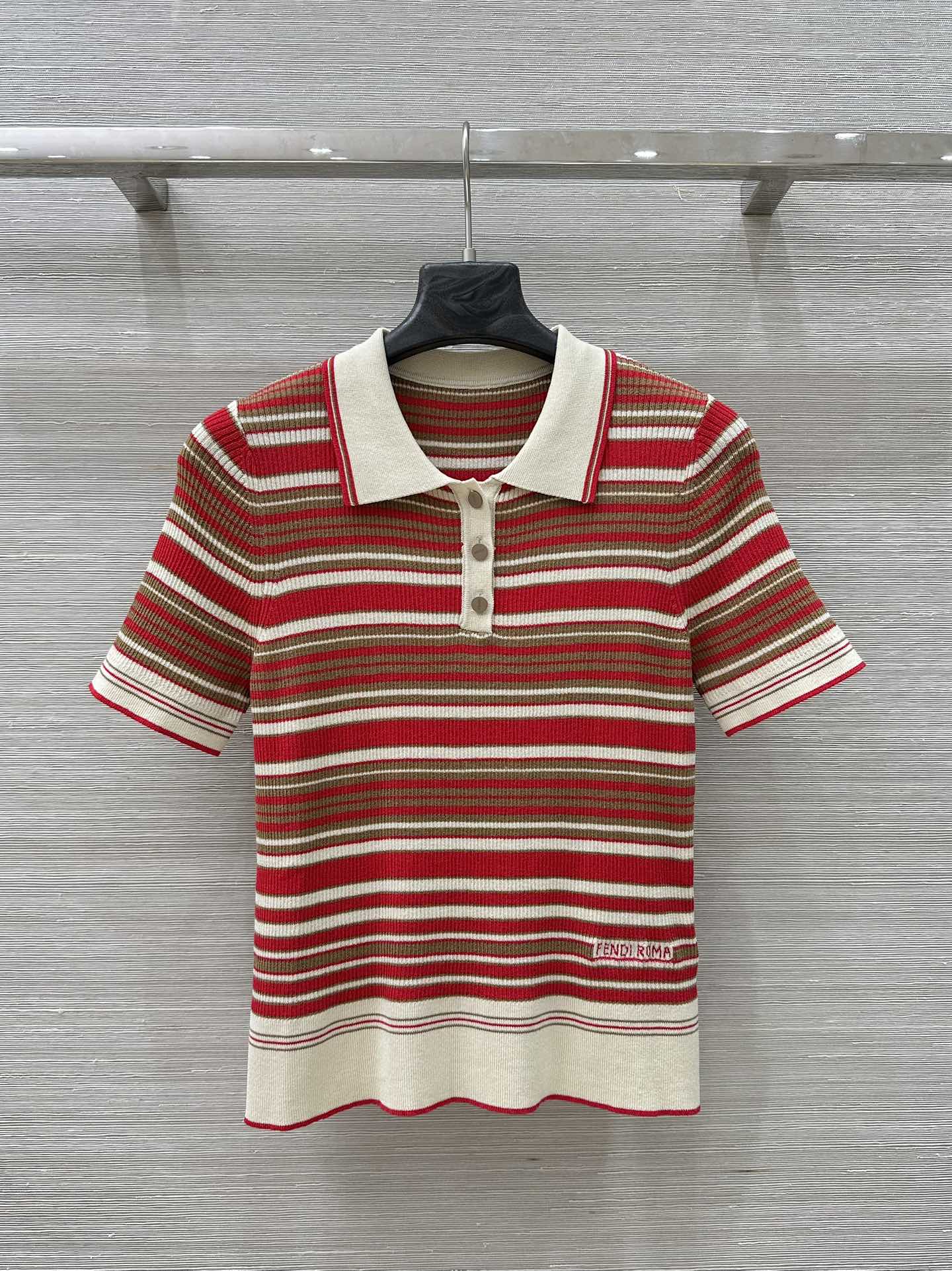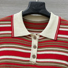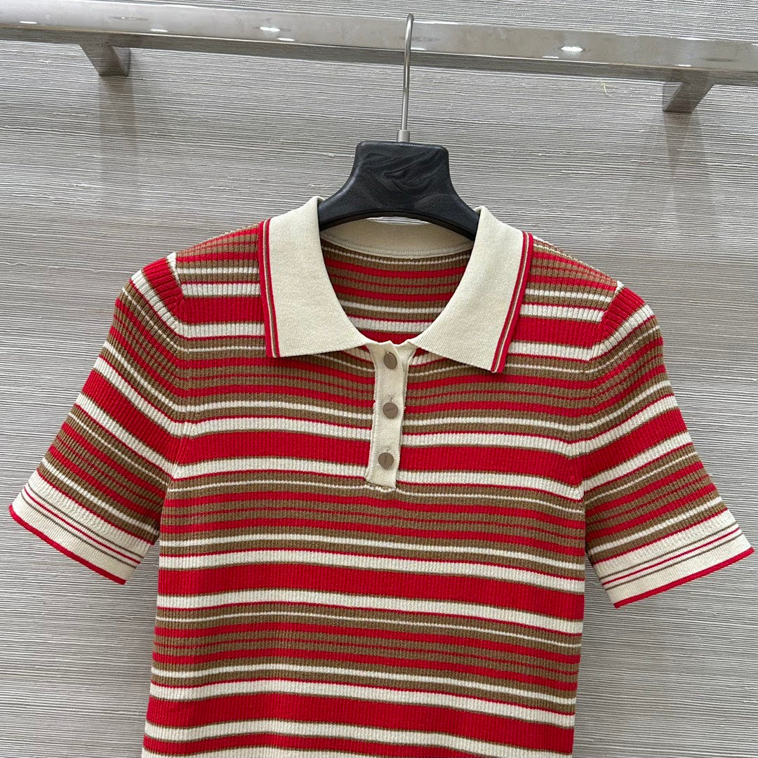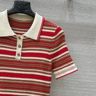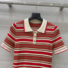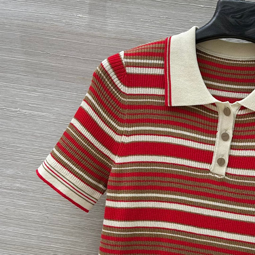 Fendi 25 Knitted Polo Short-sleeved Top Red Silk Cotton