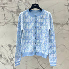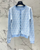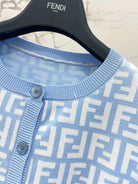 Fendi Double f Letter Knitted Cardigan Blue Wool