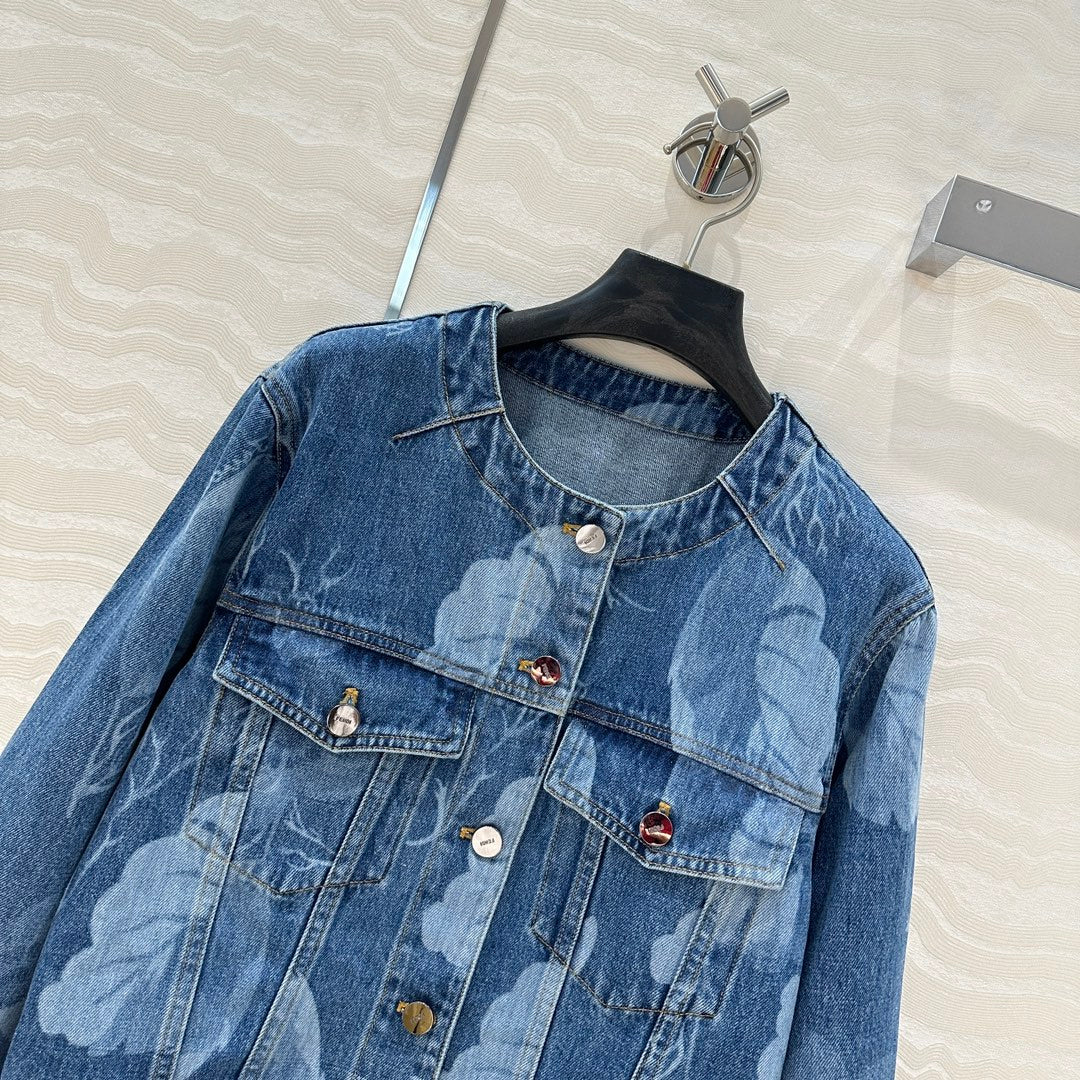 Fendi Flower Denim Jacket Blue cotton