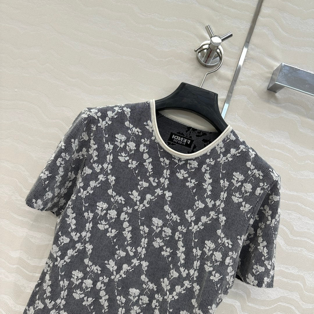 Fendi Knitted Top Dark Gray Cotton Viscose