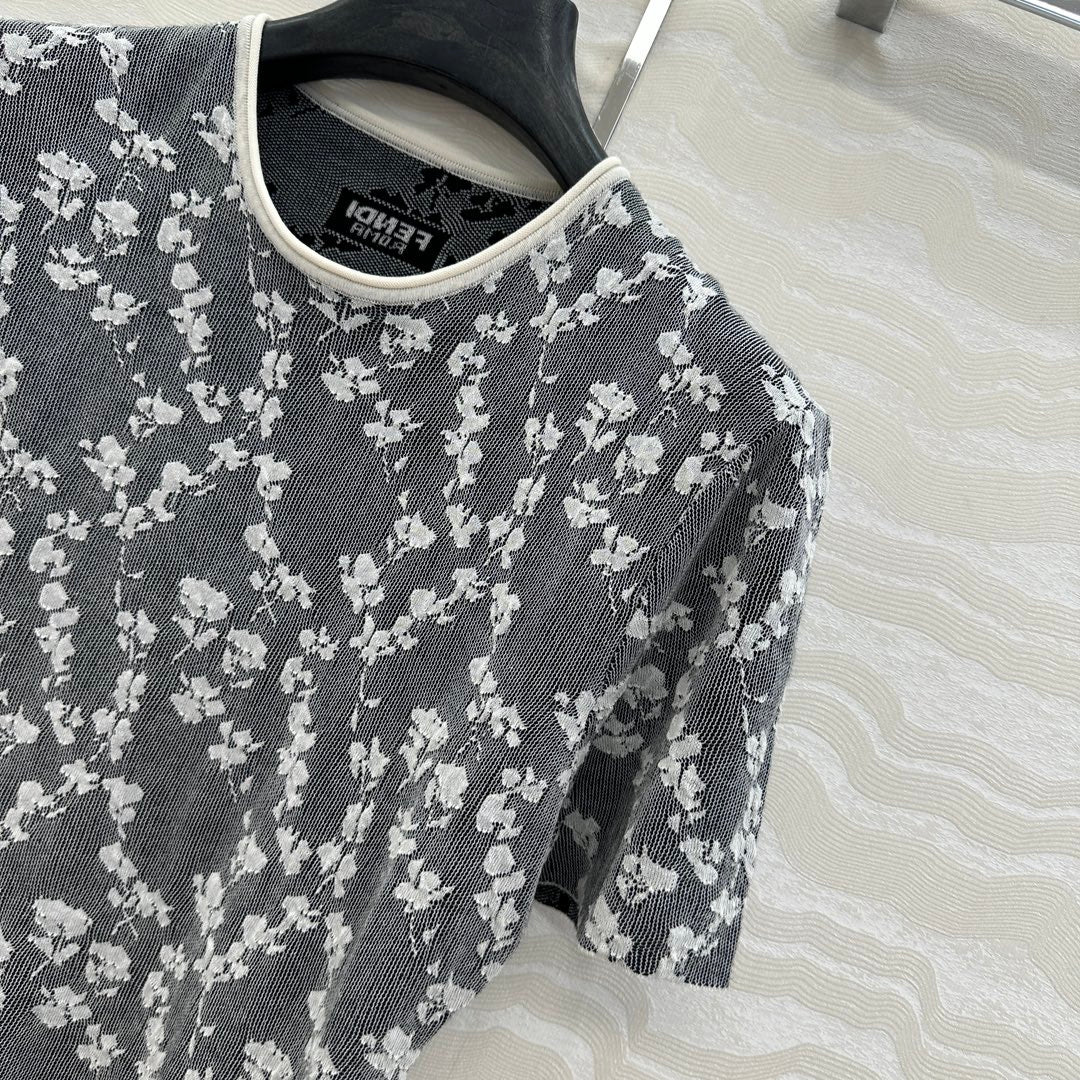 Fendi 25 Letter Hollow Knitted Short Sleeves top White Silk Cotton