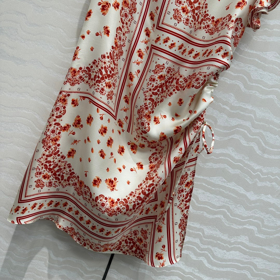 Fendi 25 Short-sleeved Dress Beige Cotton