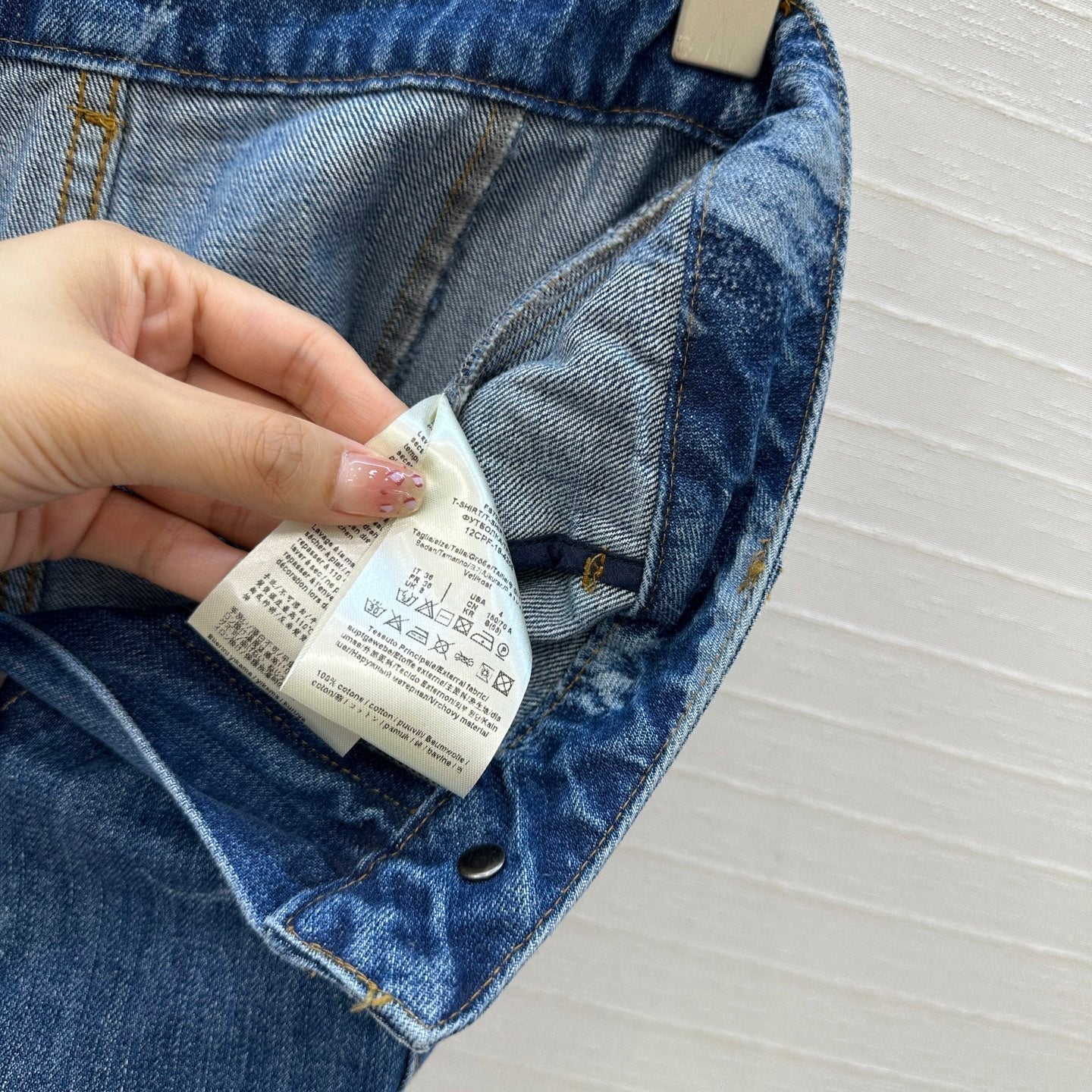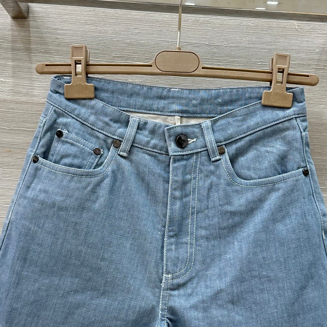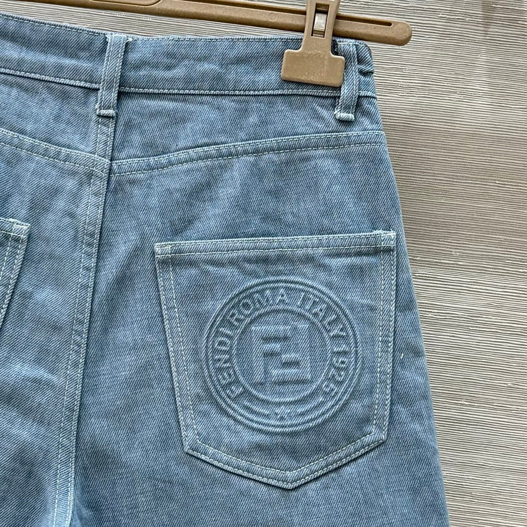 Fendi 25 Colorful Yarn Embroidered Letter Jeans Blue Cotton