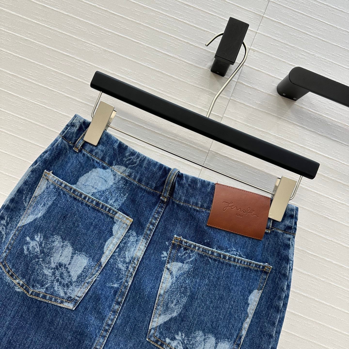 Fendi 25 Double F Irregular Skirt Blue Viscose Polyester