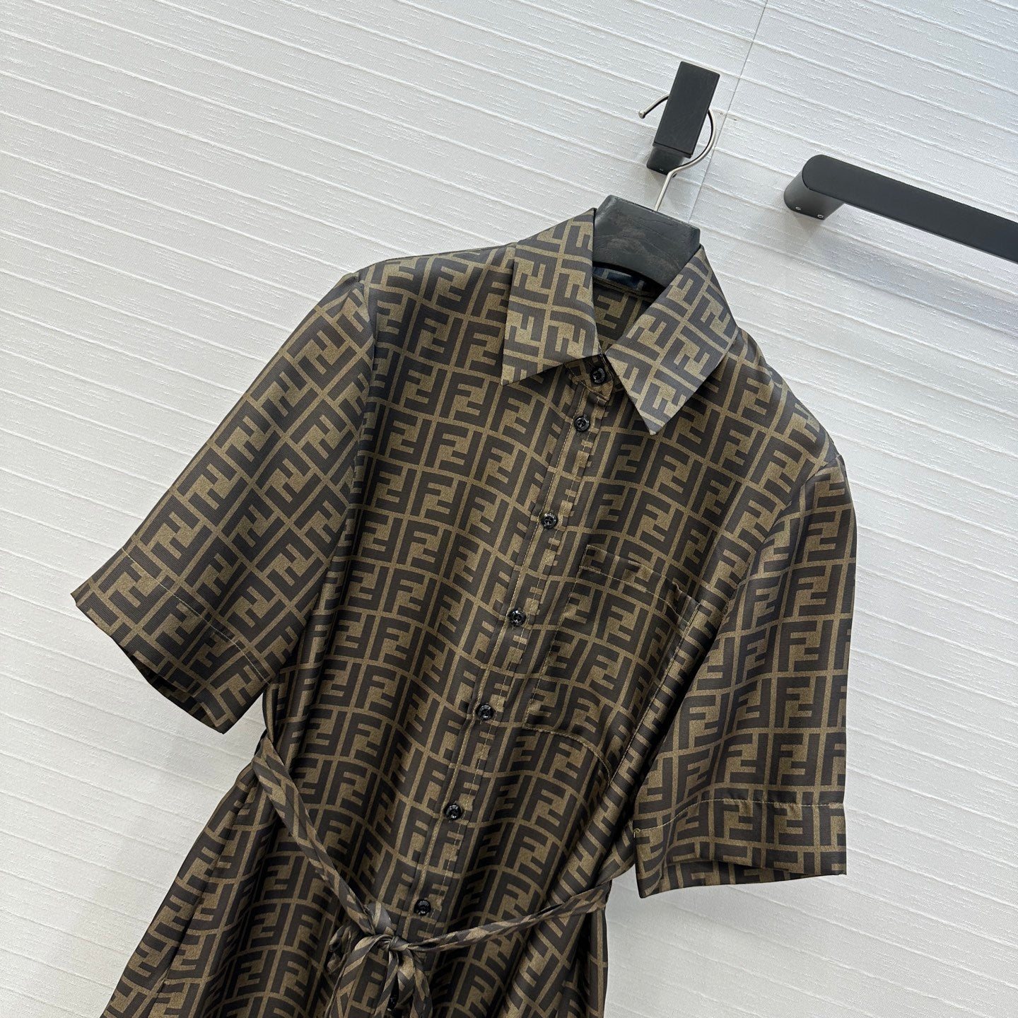 Fendi 2025 Shirt Dress Brown Black Viscose