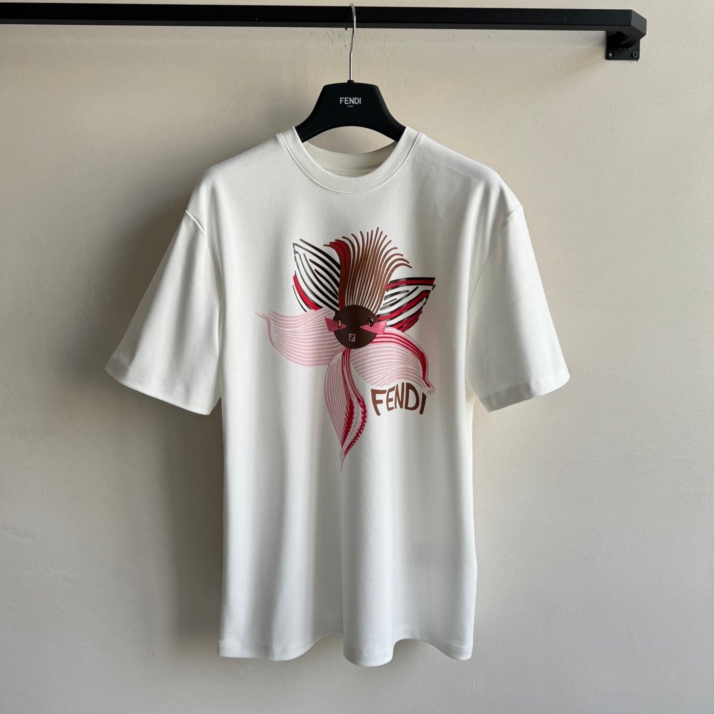 Fendi 25 Embossed Letter T-shirt Ice blue Cotton
