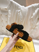 FENDI DAD SANDAL IN BLACK MIX CINNAMON BROWN FLEECE