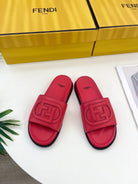 FENDI LOGO SLIDES IN CHERRY RED CALFSKIN