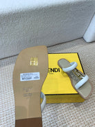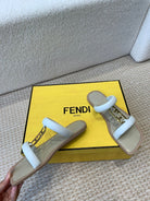 FENDI O'LOCK SLIDES WHITE CALFSKIN WITH GOLD HARDWARE