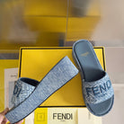 FENDI PLATFORM WEDGES IN STEEL BLUE JACQUARD FABRIC WITH EMBROIDERED LOGO