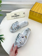 FENDI THICK SOLE 3 CM SEQUIN SLIPPER SILVER