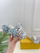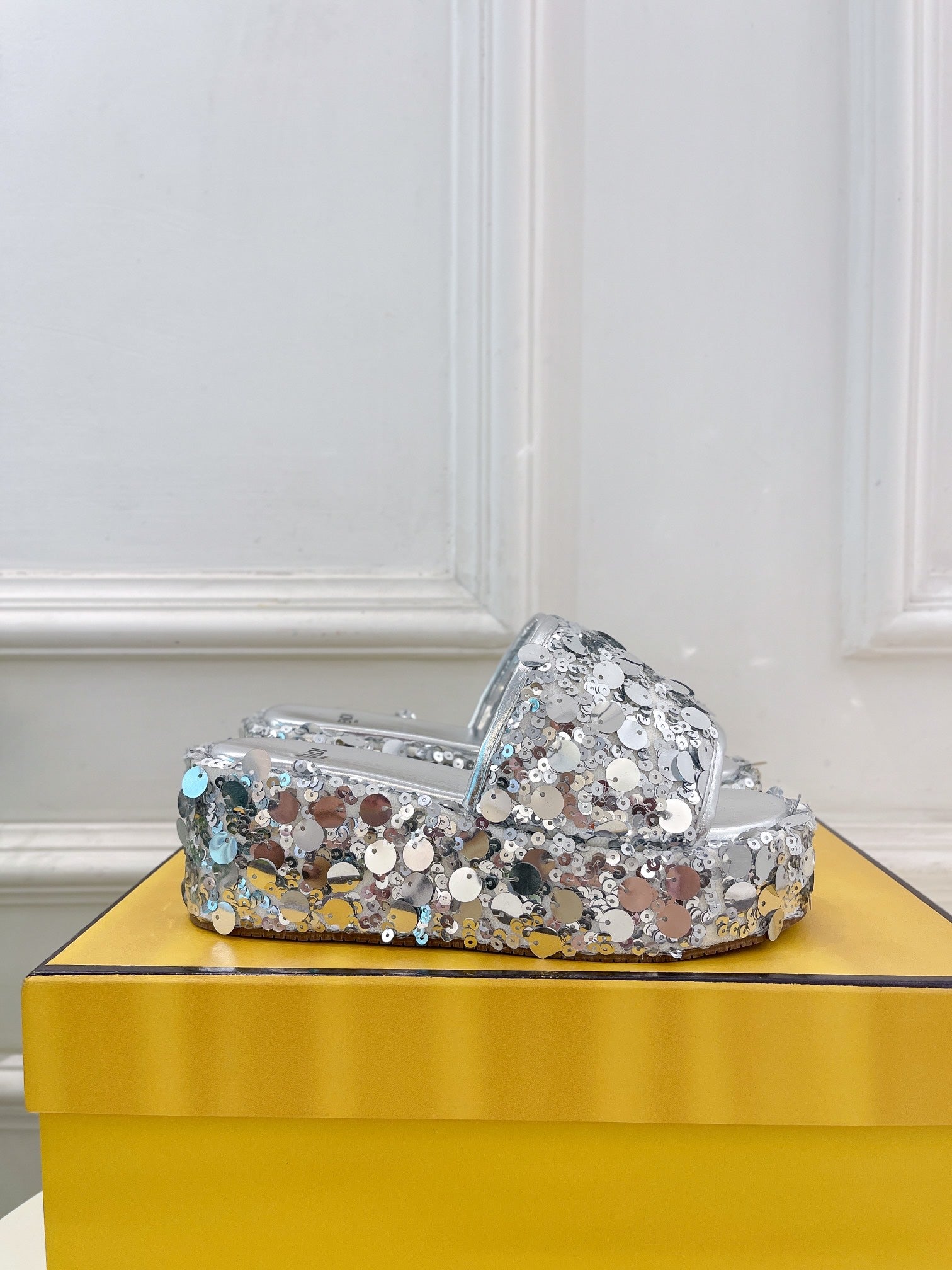 FENDI THICK SOLE 6 CM SEQUIN SLIPPER SILVER