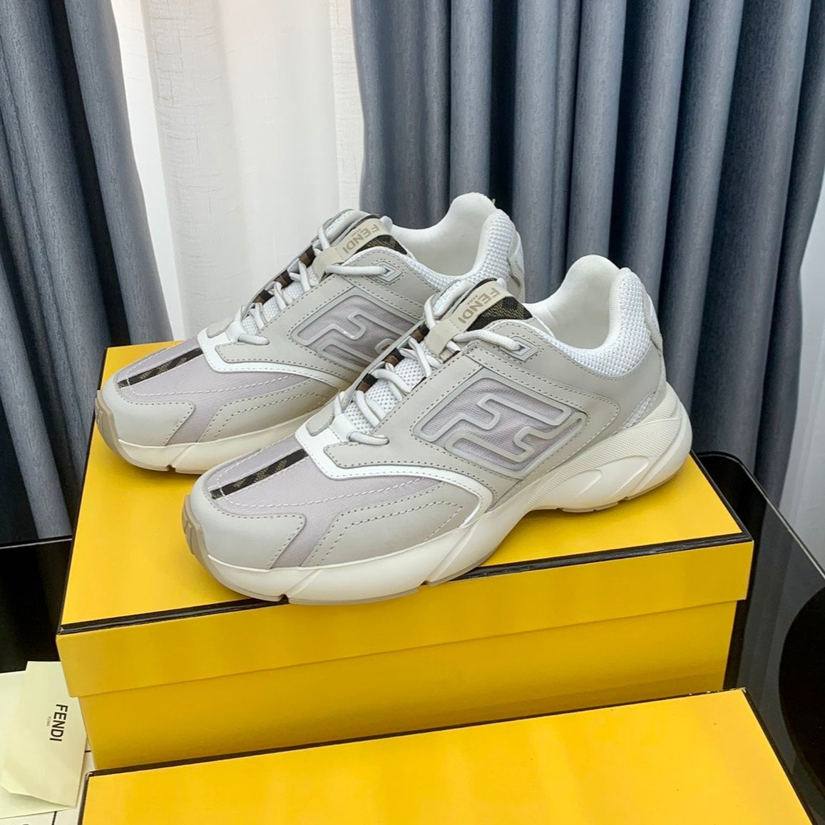 FENDI FASTER TRAINER IN GREY CALFSKIN AND SUEDE