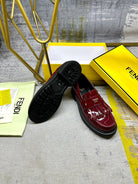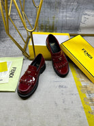 FENDI BAGUETTE LOAFERS IN MAROON RED CALFSKIN WITH GOLD HARDWARE