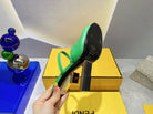 FENDI FIRST 95 MM HIGH-HEELED SANDAL IN EMERAKD GREEN LAMBSKIN GOLD HARDWARE