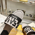 FF Women Roma Signature Black Grey Canvas Leather Slide