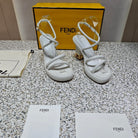 FENDI CHUNKY HIGH-HEELED SANDAL IN WHITE CALFKIN WITH GOLD HARDWARE