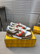 FENDI MATCH LOW TOPS IN COFFEE BROWN MIX WHITE CALFSKIN AND MESH