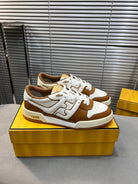 FENDI MATCH LOW TOPS IN RUSSET BROWN MIX WHITE CALFSKIN AND MESH