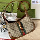 gg jackie small 28cm beige monogram canvas brown calfskin